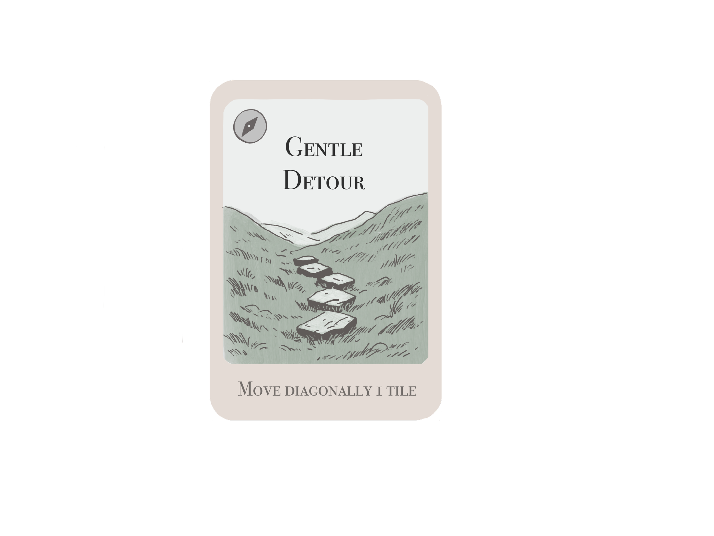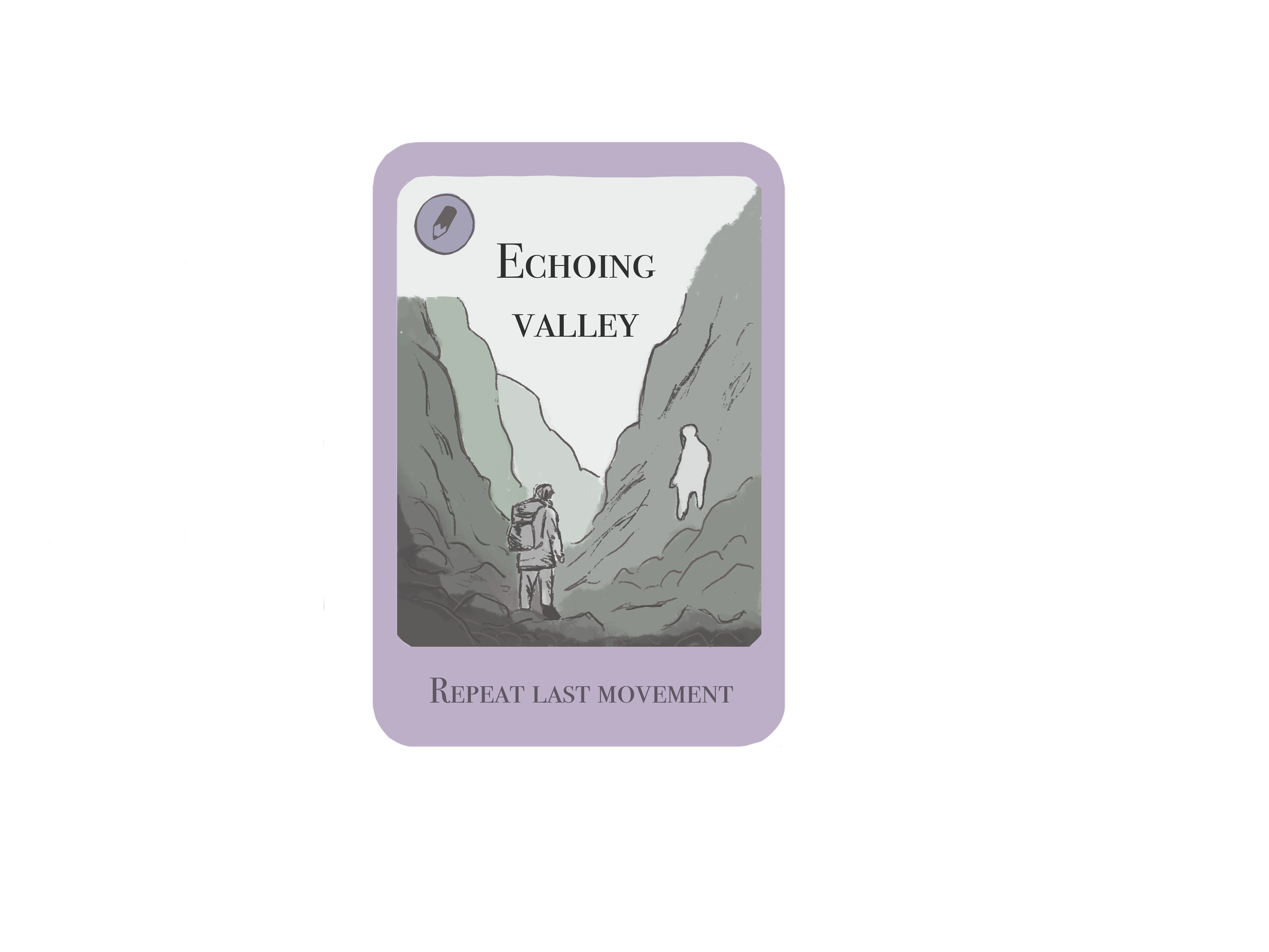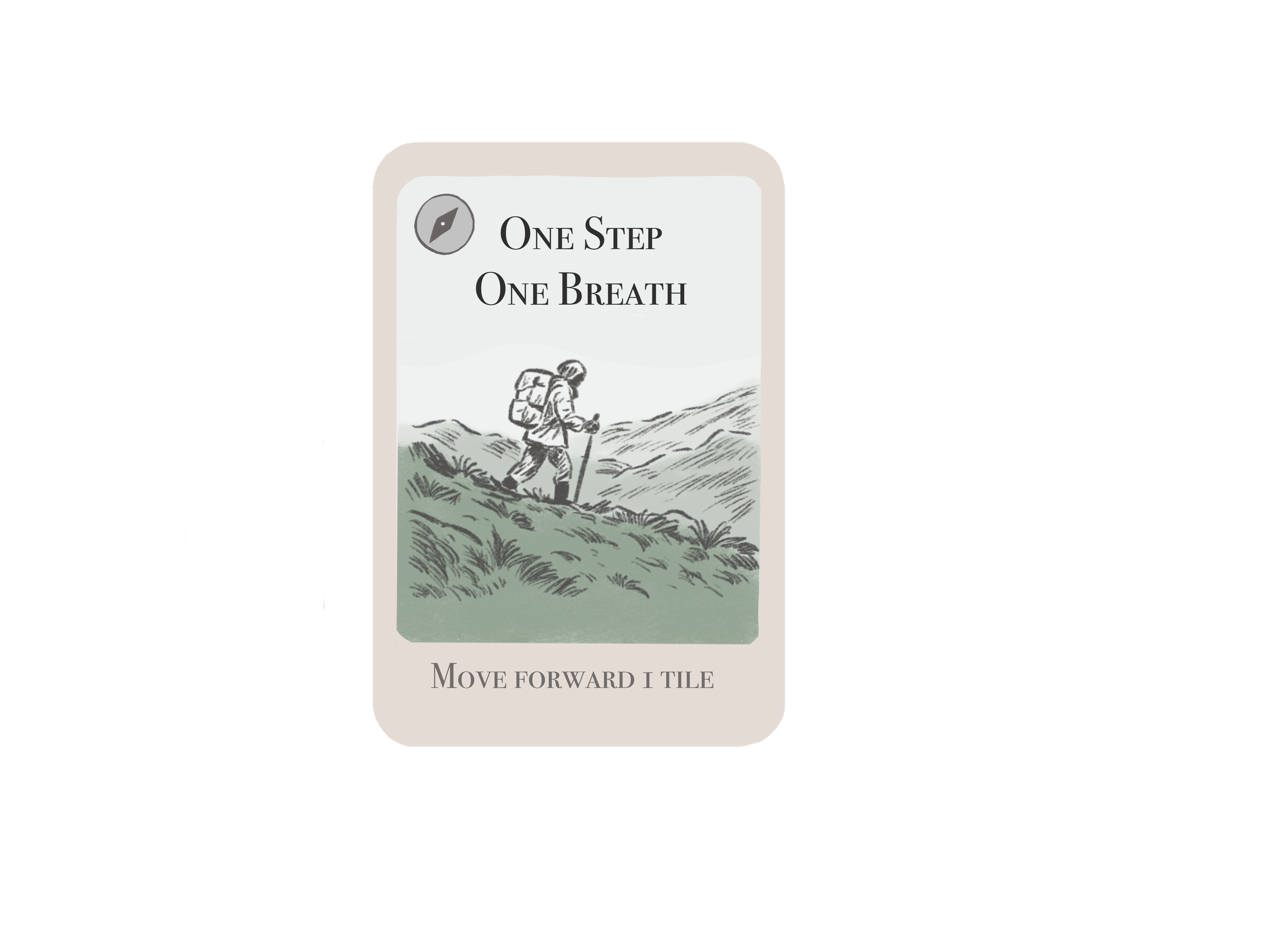 In play, you move through a landscape covered in shifting mist. Each turn you play a card: building a bridge, scouting, clearing fog, restoring supplies, or repairing what’s already collapsed. The mist hides both danger and opportunity; a card might open a new route, or it might trigger a collapse, a dead end, or send you back the way you came. Because the terrain keeps changing, every step becomes a small negotiation between risk, stamina, and direction. With only partial visibility and an ever-moving map, your path emerges through how you combine your cards and how you choose to move toward a destination you can’t fully see.