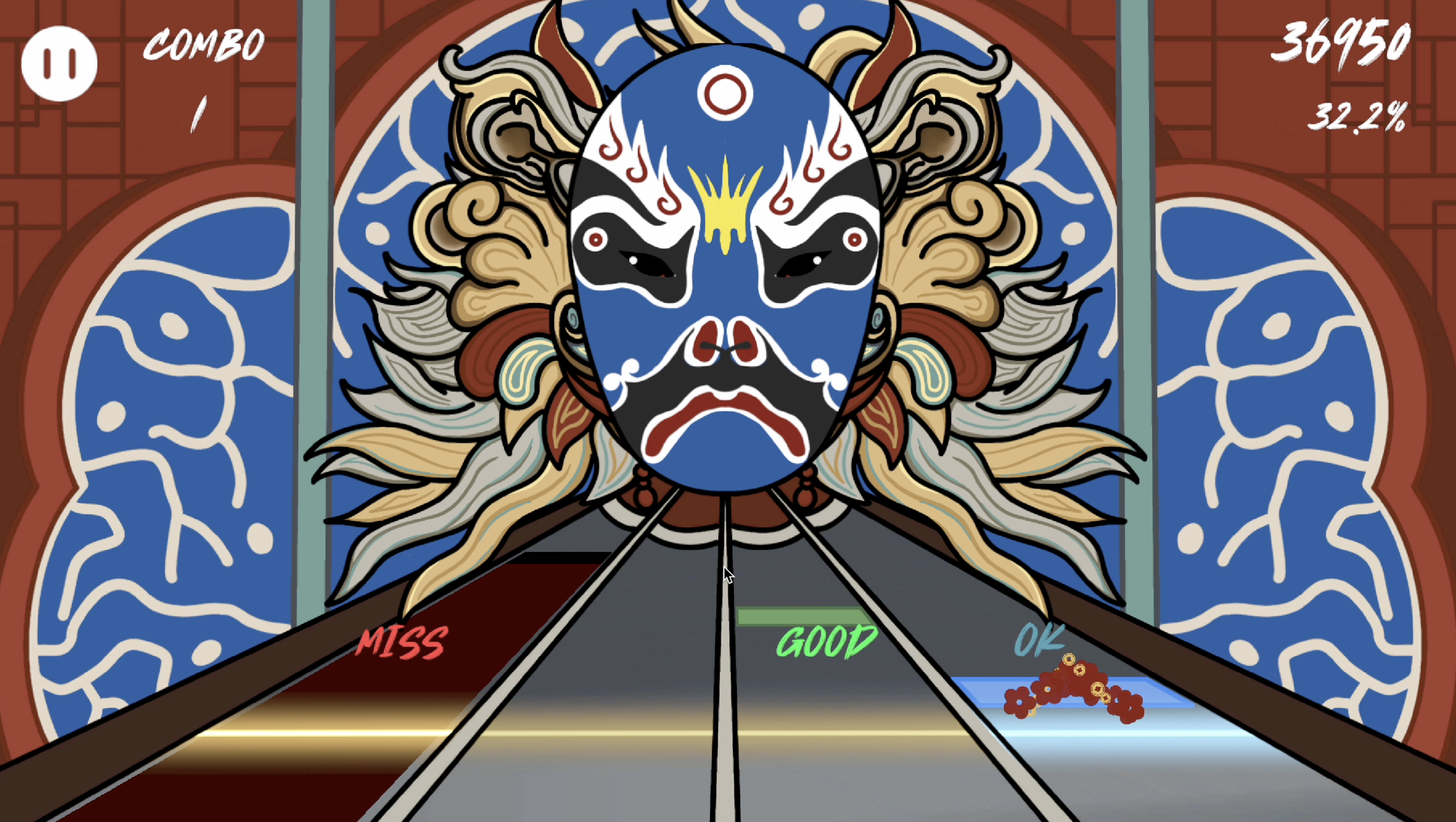 Original Music Design: The original EDM soundtrack blends Chinese opera vocals and traditional Chinese percussion with dubstep-inspired electronic composition. The rhythm structure is tightly synchronized with gameplay feedback to emphasize impact, immersion, and performance intensity.